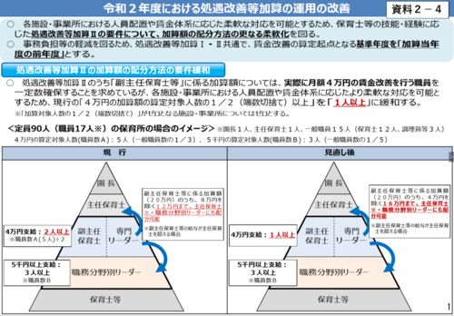保育園や認定こども園などの民間保育所等に対し従事者の処遇改善を目的として処遇改善等加算制度が設けられています。 平成25年度に保育士等処遇改善臨時特例事業費として開始された処遇改善のための人件費加算制度ですが、その後平成27年度に「処遇改善等加…