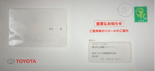 昨日帰宅したらトヨタから手紙が来ていました。 リコールのお知らせ。 今の車で2回目のリコールです。 前回は後部ドア窓ガラスの不具合でした。 tanaka-sr.hatenablog.jp 今回は燃料ポンプの不具合です。 前回と同様、今回も時間かかるんだろうな。 いっぱい…